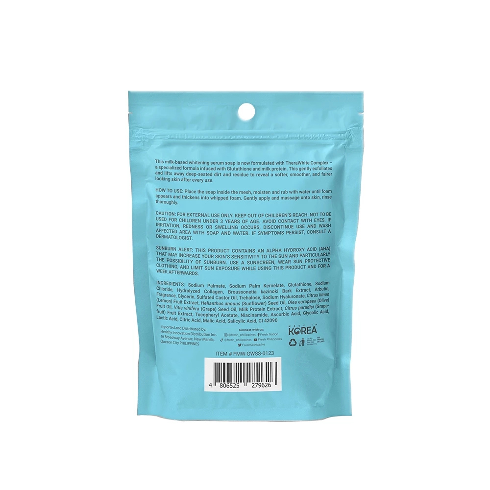 This milk-based whitening serum soap is now formulated with TheraWhite Complex – a specialized formula infused with Glutathione and milk protein. This gently exfoliates and lifts away deep-seated dirt and residue to reveal a softer, smoother, and fairer looking skin after every use.