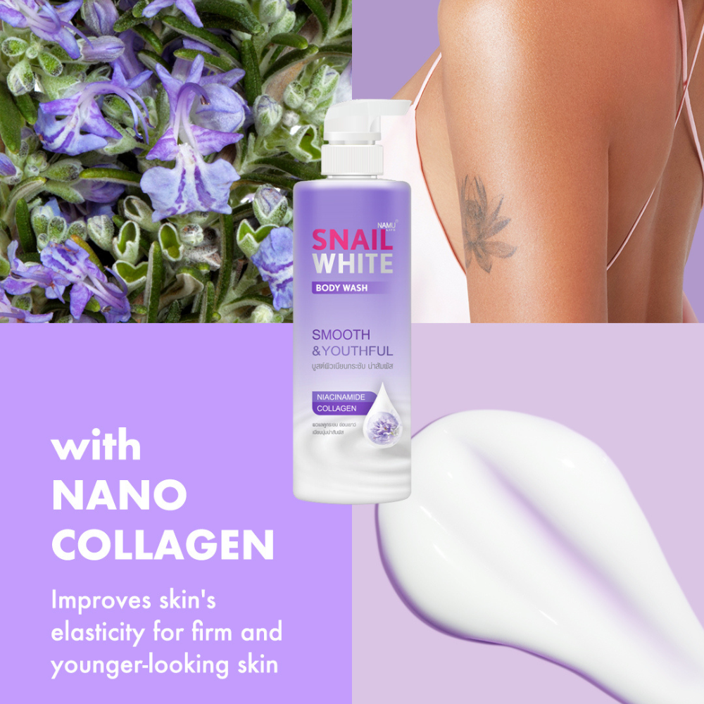 Namu Life SnailWhite Body Wash Smooth and Youthful Skincare shower cream helps mask you skin appear firmer and more youthful. Experience touchably soft and smooth skin from the very first use. Formulated with Niacinamide, Quince, Collagen and Heliskin for a transformative skincare routune.