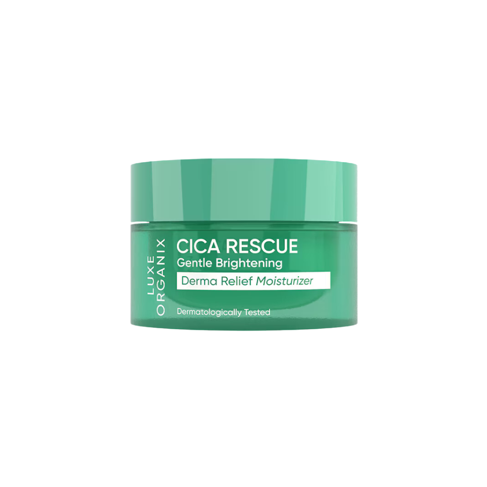 Luxe Organix Cica Rescue Gentle Brightening Derma Relief Moisturizer is a calming and nourishing moisturizer that is formulated with Centella Asiatica, which effectively creates a soothing layer on top of the skin. Its anti-oxidant properties help protect the skin from free radicals and environmental stressors. With additional benefits from Niacinamide to brighten and 5x Ceramide Complex to strengthen compromised skin barrier, this moisturizer seals in hydration to protect and relieve the skin.