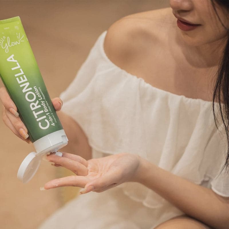 Hello Glow Citronella 4 in 1 Body Lotion provides natural care and protection for the whole family. Enriched with Vitamin E and Aloe vera, our non-sticky, gentle yet effective formula also moisturizes and softens skin with the cooling effect of peppermint!