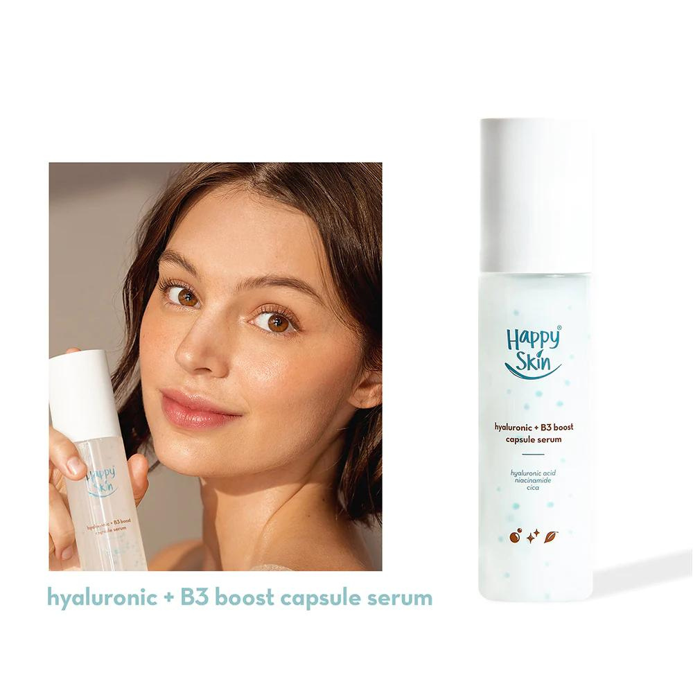 The Hyaluronic + B3 Boost Capsule Serum is a refreshing, weightless serum that combats dryness, dehydration, dullness, and inflammation for a healthy, even-toned, and glowing complexion. Loaded with five kinds of Hyaluronic Acid, it contains Hyaluronic capsules suspended in an emulsion base to boost skin’s moisture and hydration levels. This unique formula allows the skin to receive optimum benefits.
