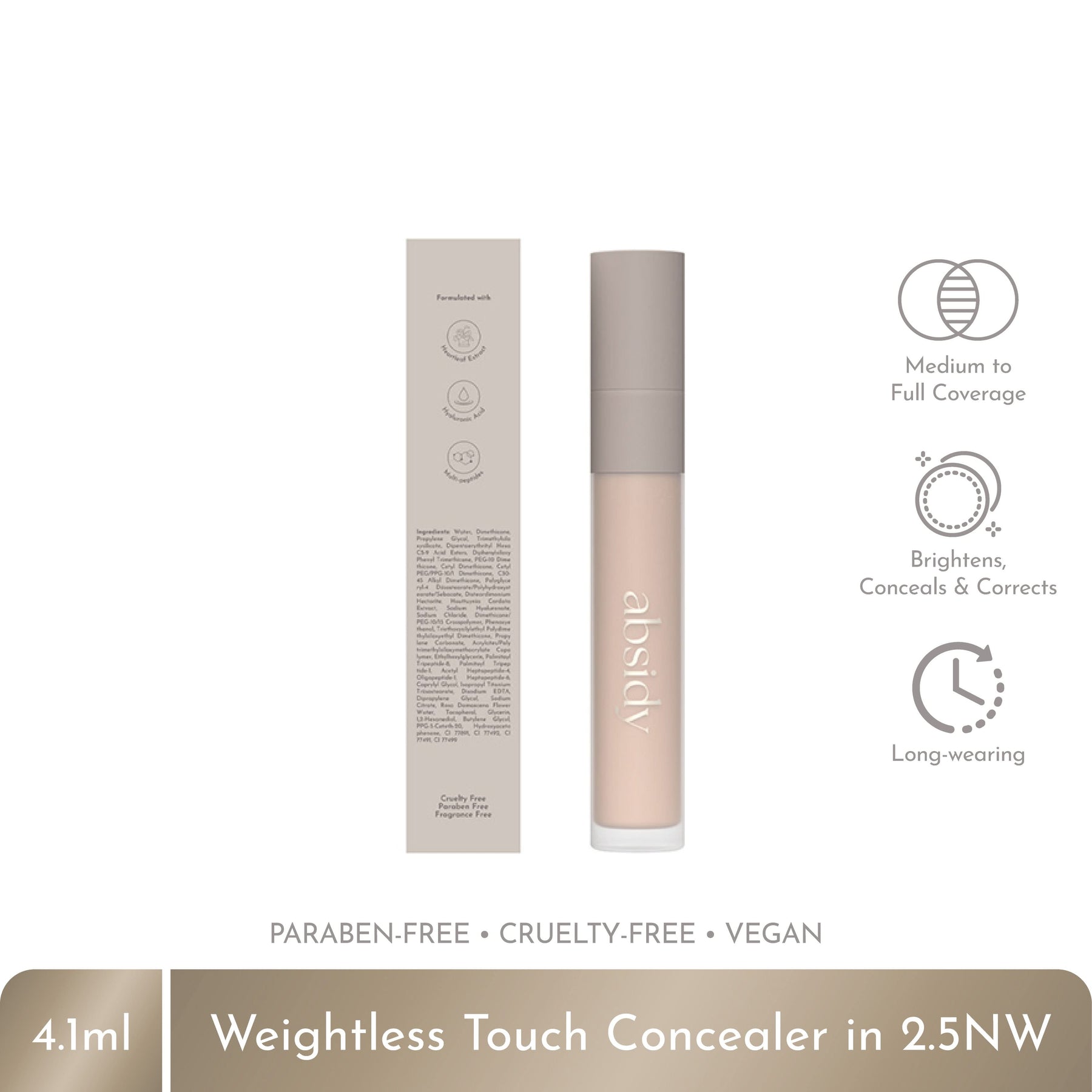 A creamy, weightless, and long-lasting liquid concealer that gives medium to full coverage. This skin-perfecting formula adheres a flexible layer of coverage that is resistant to creasing, transfer, and rinse-off. It can be used for spot-concealing, under-eye brightening, and color correcting. It helps visibly smoothen & blur the skin while providing a natural, satin finish.
