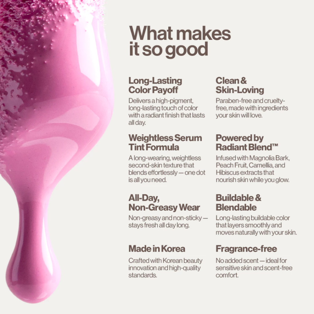 This dreamy blend gives a radiant touch of color while caring for your skin with our Radiant Blend™️ of magnolia kobus bark, peach, camellia and hibiscus extracts.