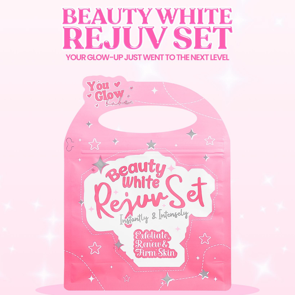 You Glow Babe Beauty White Rejuvenating set will lighten dark spots and acne marks, smoothen your face, unclog and lessen open pores, and prevents acne. This set gently peels away the top layer of the skin, revealing fairer, smoother , and renewed skin.