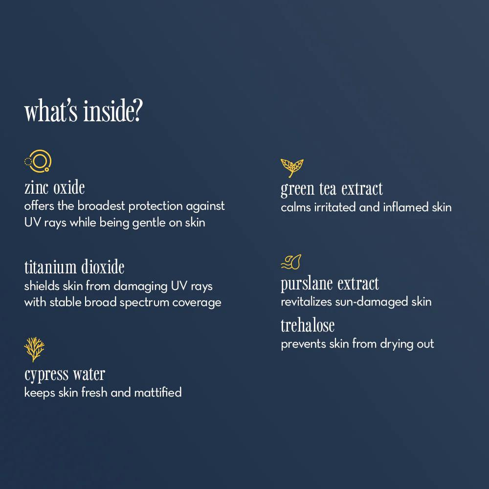 HOW TO USE: Use after moisturizer and before makeup. Apply liberally on face and neck before sun exposure. Reapply throughout the day, especially after swimming and sweating. Unlike chemical sunscreens, which need time to work, mineral sunscreens provide immediate protection once applied.