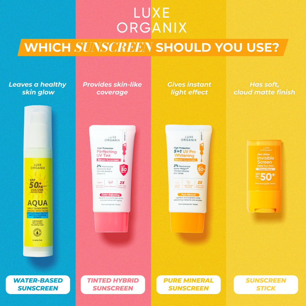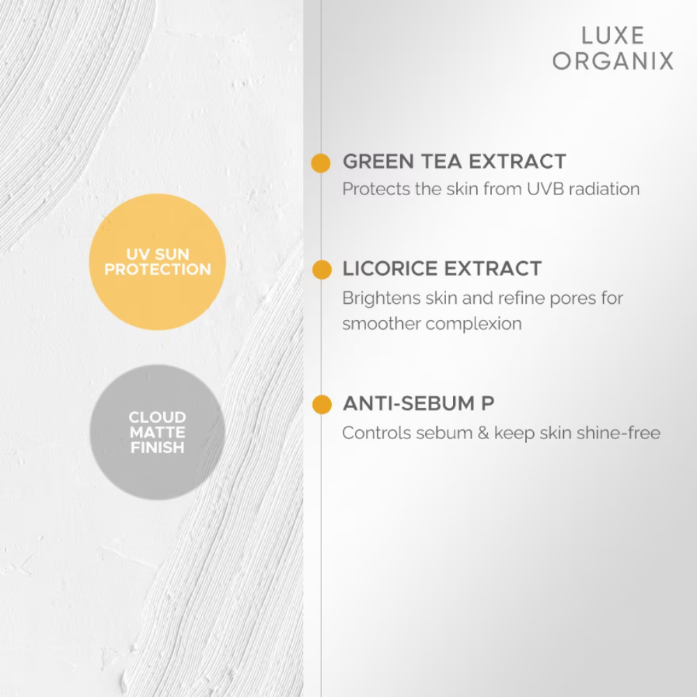 Luxe Organix Zero Shine Invisible Screen Daily Sun Stick with SPF 50+ PA++++ is a sheer, lightweight, and non-greasy sunscreen stick that is perfect for everyday and on the go use. Infused with Green Tea Extract for sebum control to keep you shine-free, Licorice Extract to brighten skin, and Anti-Sebum P to refine pores for smoother complexion. It has a soft, cloud matte finish that glides on smoothly with zero tugging and looks seamless on bare face and on top of makeup for easy SPF reapplication throughout the day.
