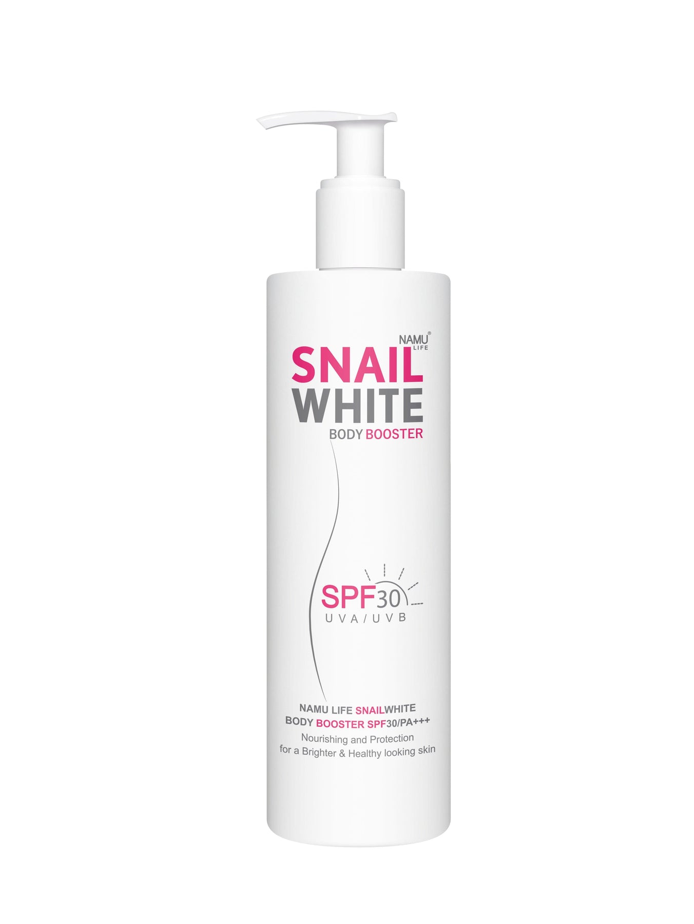A luxurious Body Booster lotion with SPF30/PA+++ is formulated uniquely to nourish & protect. Formulated with collagen from Snail Potion and antioxidants from Astaxanthin & Ceramide which help to restore dull and damaged skin for brighter, firmer, and hydrated skin. With SPF30/PA+++, this lotion simultaneously provides protection from harsh UVA and UVB rays.
